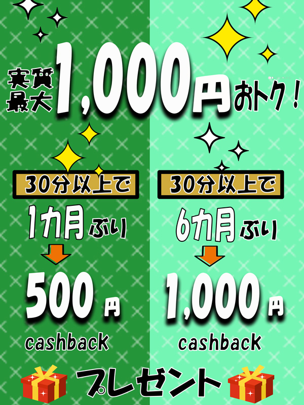 当店ではお客様のご利用料金に応じて次回以降使えるクーポンを発行いています。クーポンとは当店をお得な割引価格にて使えるポイントです。是非ともご利用ください。詳細はこちら